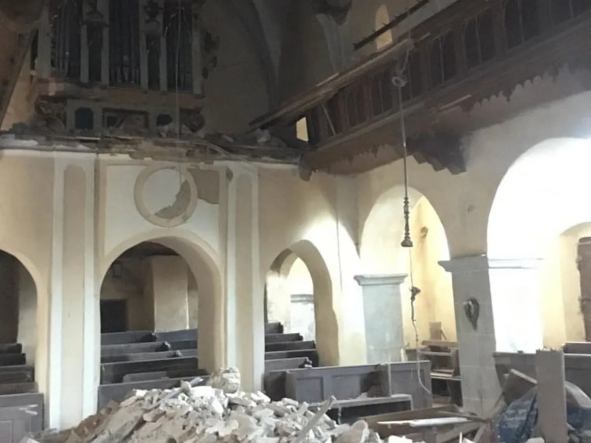 FOTO Tavanul bisericii fortificate din Alțâna, construită în secolul al XVI-lea, s-a prăbușit