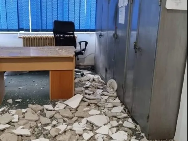 FOTO Tavanul secției de poliție din Pucioasa s-a prăbușit. Europol: Vom fi nevoiți să purtăm căști