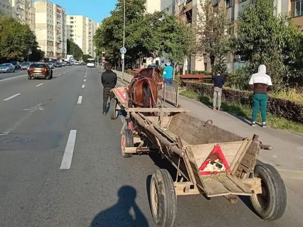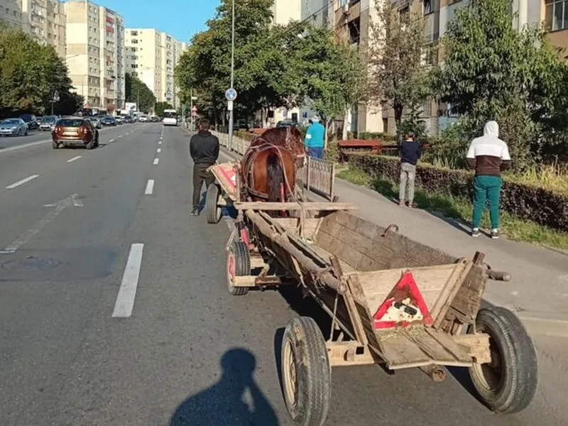 FOTO Transport mai eco nu există! Două căruțe, surprinse în trafic în mijlocul Piteștiului