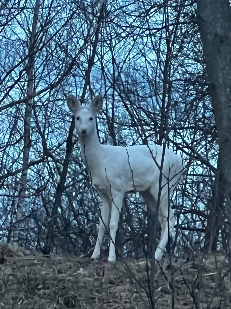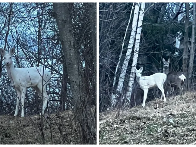 Un animal rar a fost surprins de jandarmii montani din Brașov. Imaginile inedite arată o căprioară cu blana albă.