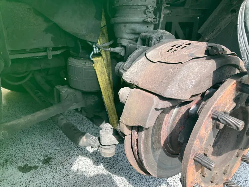 FOTO Un autocar românesc, surprins fără o roată pe autostradă în Austria. Puntea, legată cu sfoară
