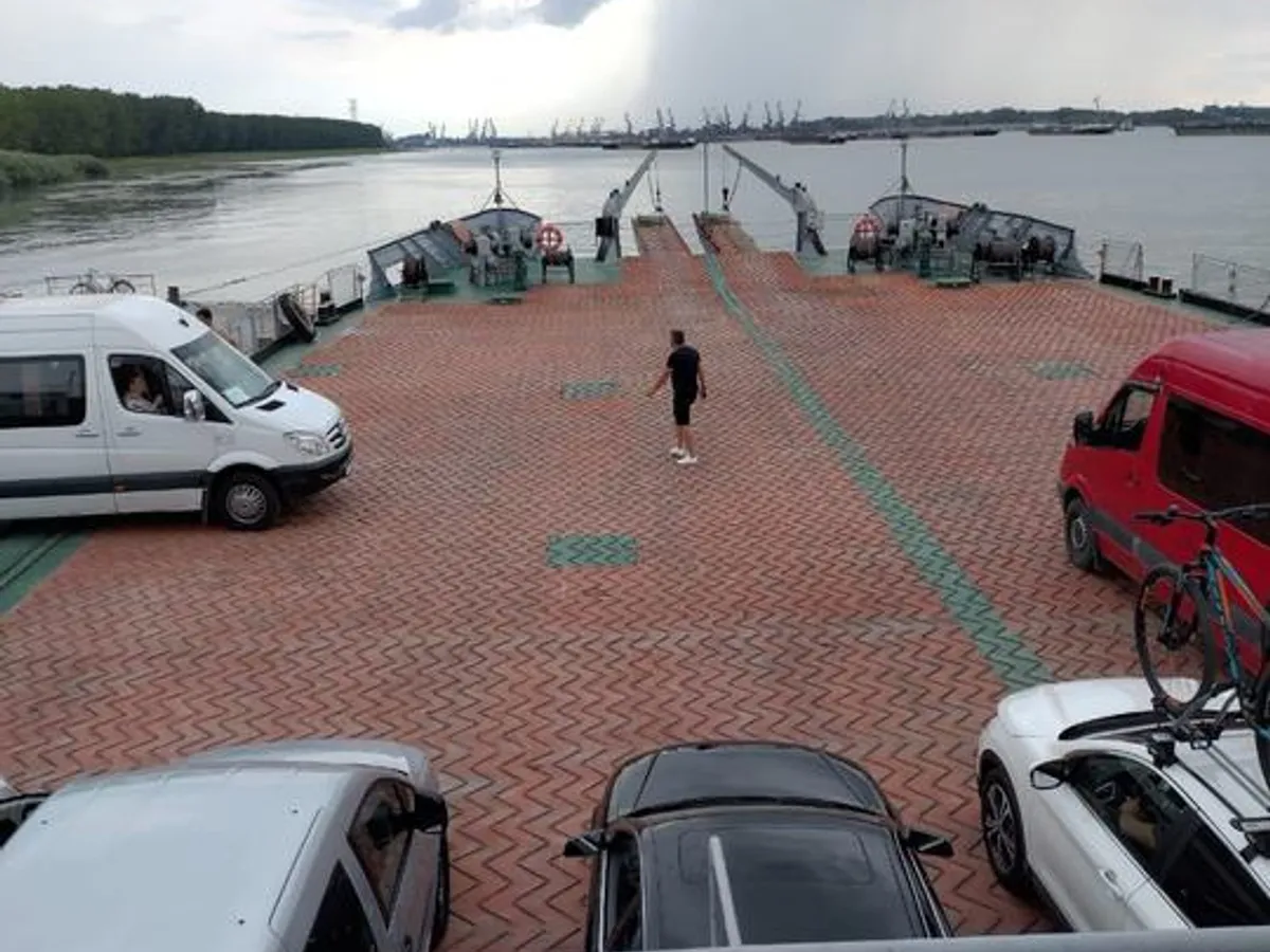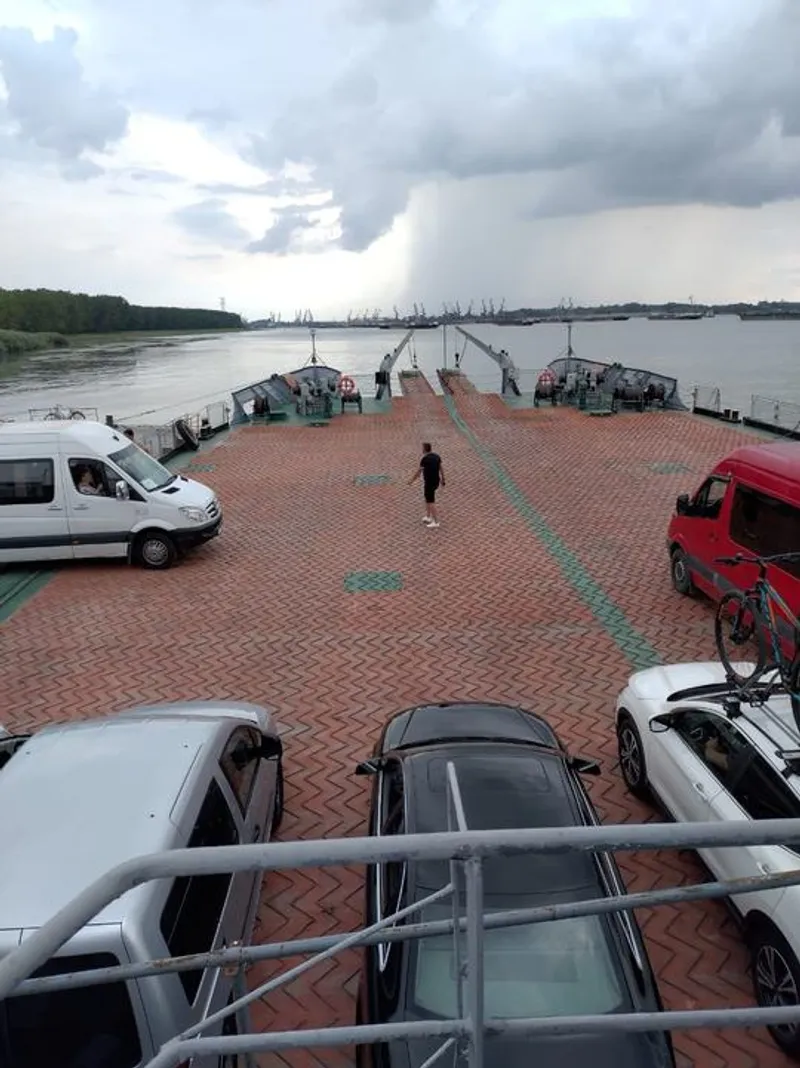 FOTO Un bac militar ajută la traversarea Dunării între Ucraina și România. Capacitate: 500 persoane