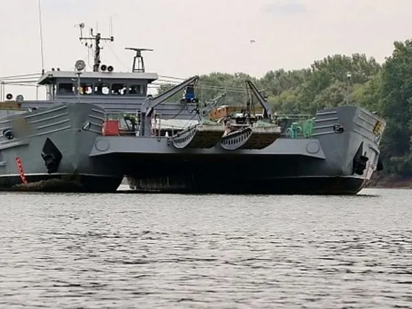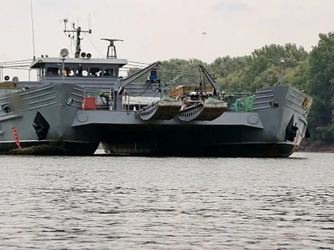 Nava militară care acţionează la Galaţi este un bac fluvial de tip catamaran, cu o capacitate totală de transport a autovehiculelor de 300 tone sau de 500 de persoane, la o singură cursă.