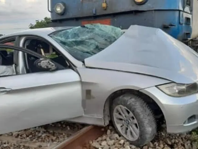 Un grav accident de circulație a avut loc în localitatea Alexeni, județul Ialomița. Șoferul unui BMW nu a acordat prioritate unui tren de persoane, mașina fiind lovită în plin de locomotivă și târâtă zeci de metri pe șine.