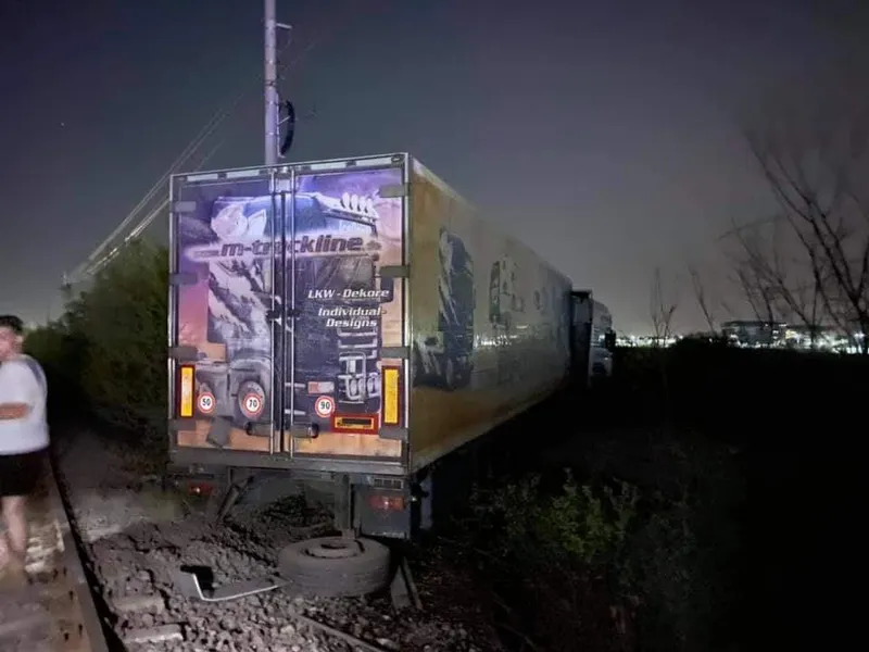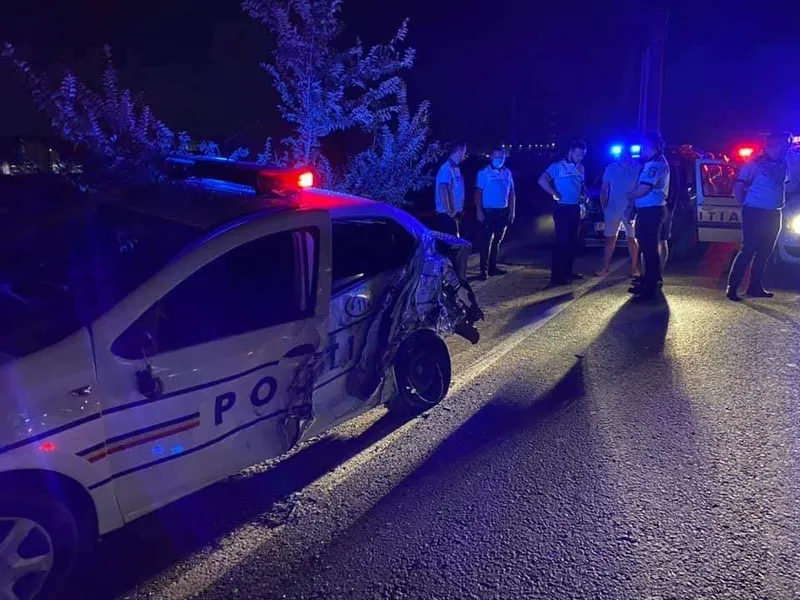 FOTO Un camion a spulberat o mașină de poliție și alta oprită la un control. Pe Centura Capitalei