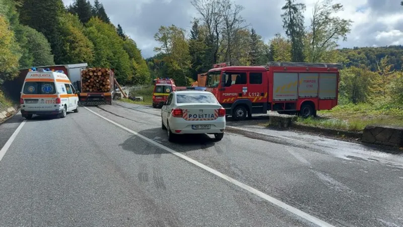 Șoferul celuilalt camion greu, în vârstă de 30 de ani, a primit îngrijiri medicale la locul accidentului de la echipajul SMURD și a refuzat să fie transportat la spital.