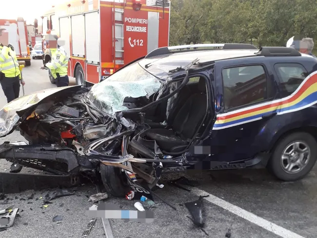 În urma accidentului, conducătorul autoturismului și un pasager din mașină, un bărbat de 64 de ani, din județul Dâmbovița, au fost răniți și transportați la o unitate medicală din Vâlcea.
