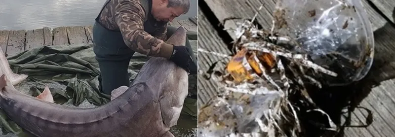 „Totul a decurs de la sine, s-a lasat prins ușor, nu s-a opus deloc, a fost pus pe targă și dus repede la ponton pentru studierea acestuia de mai aproape. Nimic lovit, nimic rupt și, totuși, peștele avea ceva, avea un ghem de sfoară, un rest de sac de rafie cu ceva resturi de plastic și alte deșeuri exact în interiorul gurii prinse puternic de cerul gurii… urmează 2-3 minute de operație și scot ceva ce nu are legătură cu mediul lui”, a povestit pescarul Dan Constantin, pe pagina sa de Facebook.