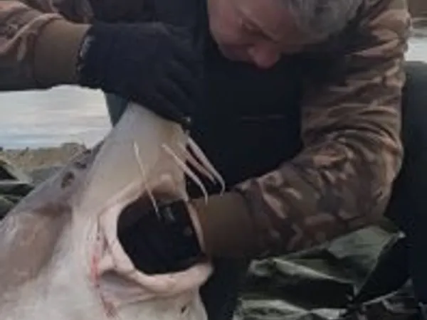 FOTO Un morun de 30 de ani, care înghițise sfoară și plastic, salvat de pescari