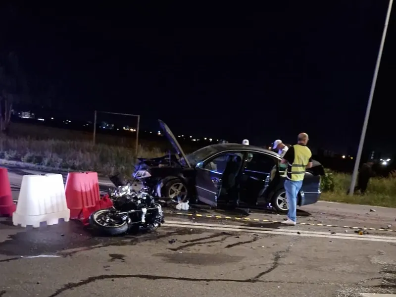 FOTO Un motociclist a intrat frontal într-o mașină de pe contrasens în Ploiești. A murit pe loc