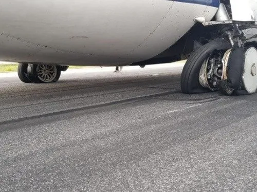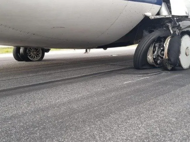 FOTO. Un nou incident pe Otopeni. Pneul unui avion a explodat la aterizare