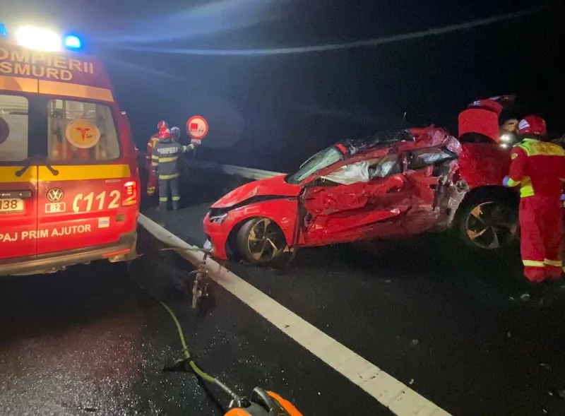 FOTO Un preot și-a luat Audi de sute de cai, a apăsat accelerația și a murit pe A1. Nu purta centura