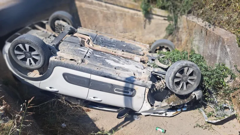Vehiculul nostru a ieșit de pe șosea și s-a răsturnat într-un șanț.
