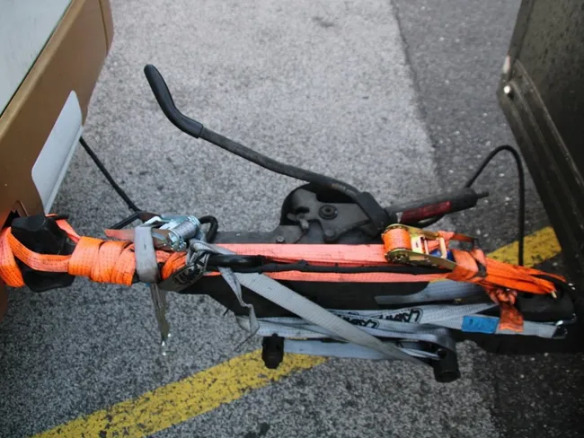 Un șofer român de autocar, prins de poliție cu remorca legată cu „sfoară”. Amenda, mii de €