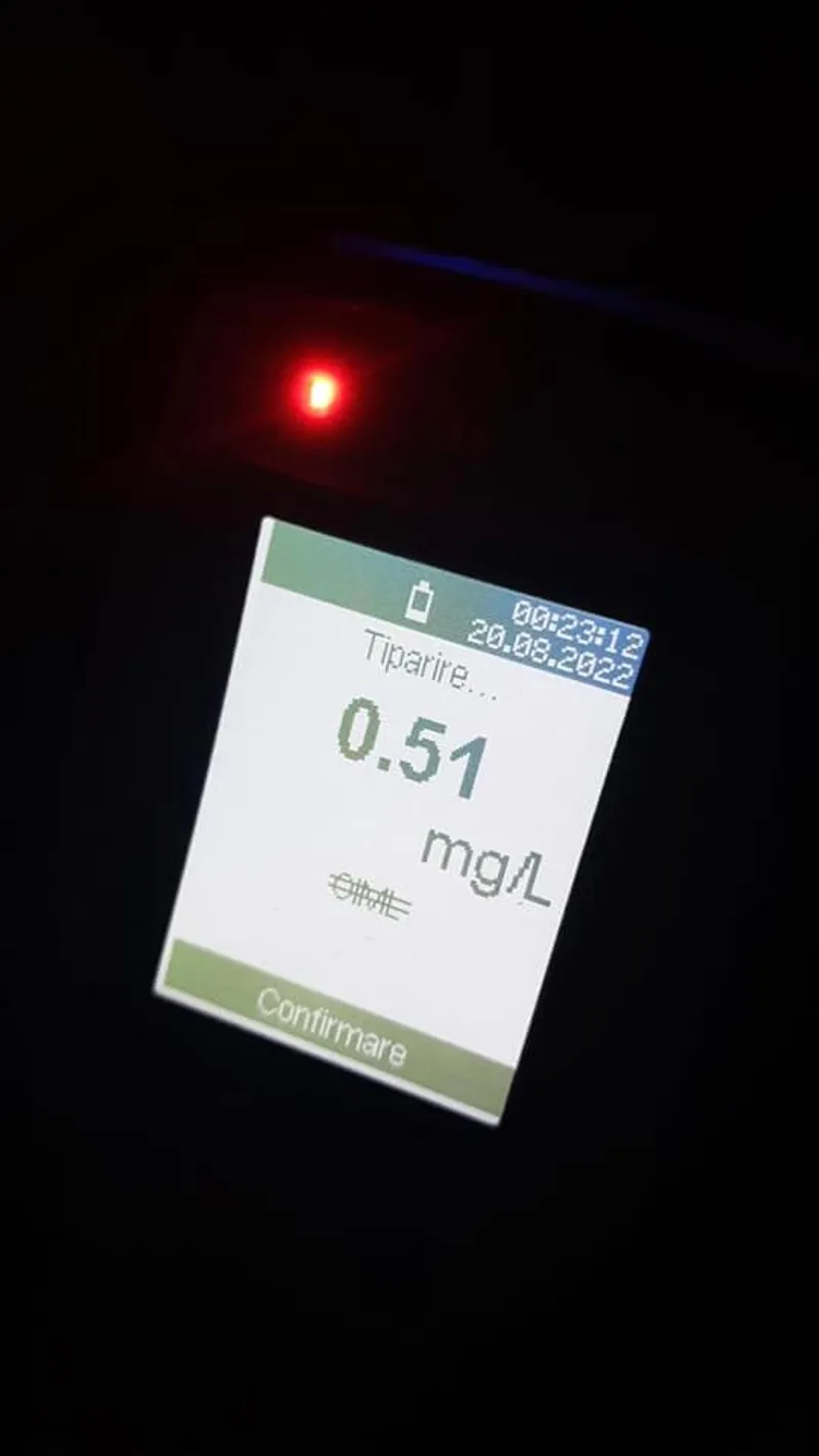 Rezultatul în urma testării etilotest a fost 0,51 mg/l alcool pur în aerul expirat și i-au fost prelevate probe biologice.