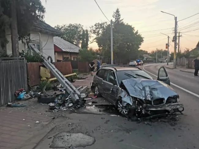 Un tânăr s-a urcat băut la volan și s-a crezut pilot pe străzile din Târgu-Neamț. A pierdut controlul într-un viraj, a rupt un stâlp de electricitate cu mașina și a ajuns la spital.