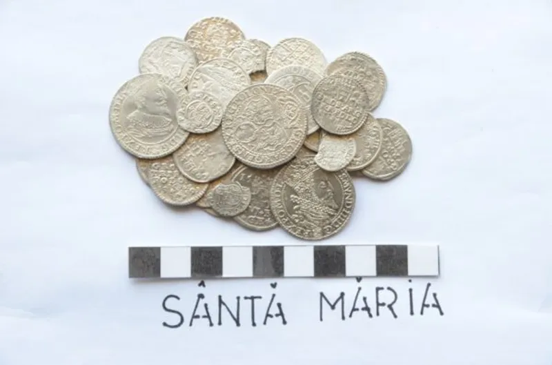 Un tezaur monetar ce include 36 de monede de secol XVI a fost identificat recent de arheologii Muzeului Judeţean de Istorie şi Artă Zalău în hotarul satului Sântă Măria, din Sălaj, după ce un pasionat de arheologie a descoperit accidental în locul respectiv câteva monede.