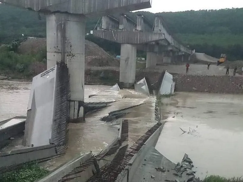 Grinzile podului aflat în construcţie peste râul Someş, la intrarea în oraşul Beclean, din judeţul Bistriţa-Năsăud, s-au prăbuşit joi, 13 iulie, în urma vijelii. Sunt probleme mari și pe calea ferată.