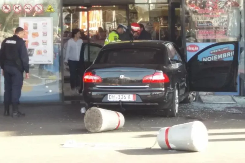 FOTO + VIDEO Atac la mall în Brăila. Un bărbat a intrat cu mașina într-un grup de oameni