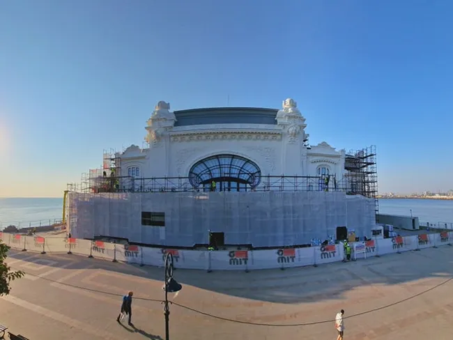 Cazinoul din Constanța a fost parțial reabilitat, după ce schelele de pe fațada superioară au fost date jos vineri dimineață, în urma finalizării lucrărilor.