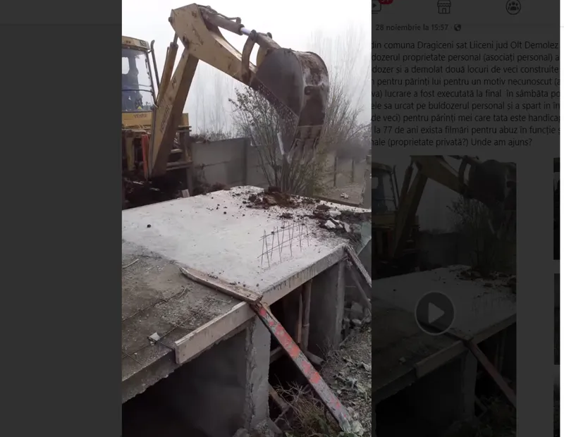 „Popa din comuna Dragiceni sat Liiceni jud Olt Demolez locuri de veci cu buldozerul proprietate personal (asociați personal) abuziv sa urcat pe buldozer și a demolat două locuri de veci construite de către Savu Marian pentru părinți lui pentru un motiv necunoscut (a vrut să-l dea a-l cuiva) lucrare a fost executată la final în sâmbăta pomenilor părintele sa urcat pe buldozerul personal și a spart in întregime bolta (locul de veci) pentru părinți mei care tata este handicapat la 80 iar mama la 77 de ani exista filmări pentru abuz în funcție și răzbunare personale (proprietate privată?) Ude am ajuns”, a scris Adrian Florică.