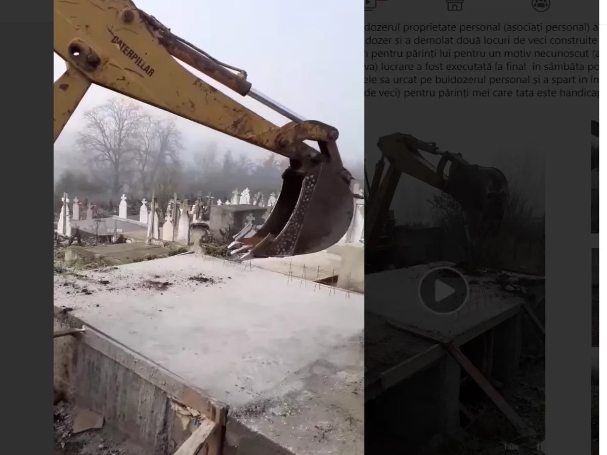 Un localnic dintr-o localiatte de județul Olt a postat mai multe clipuri video în care se vede cum un preot, urcat pe un buldozer dărâmă locuri de veci din cimitir.
