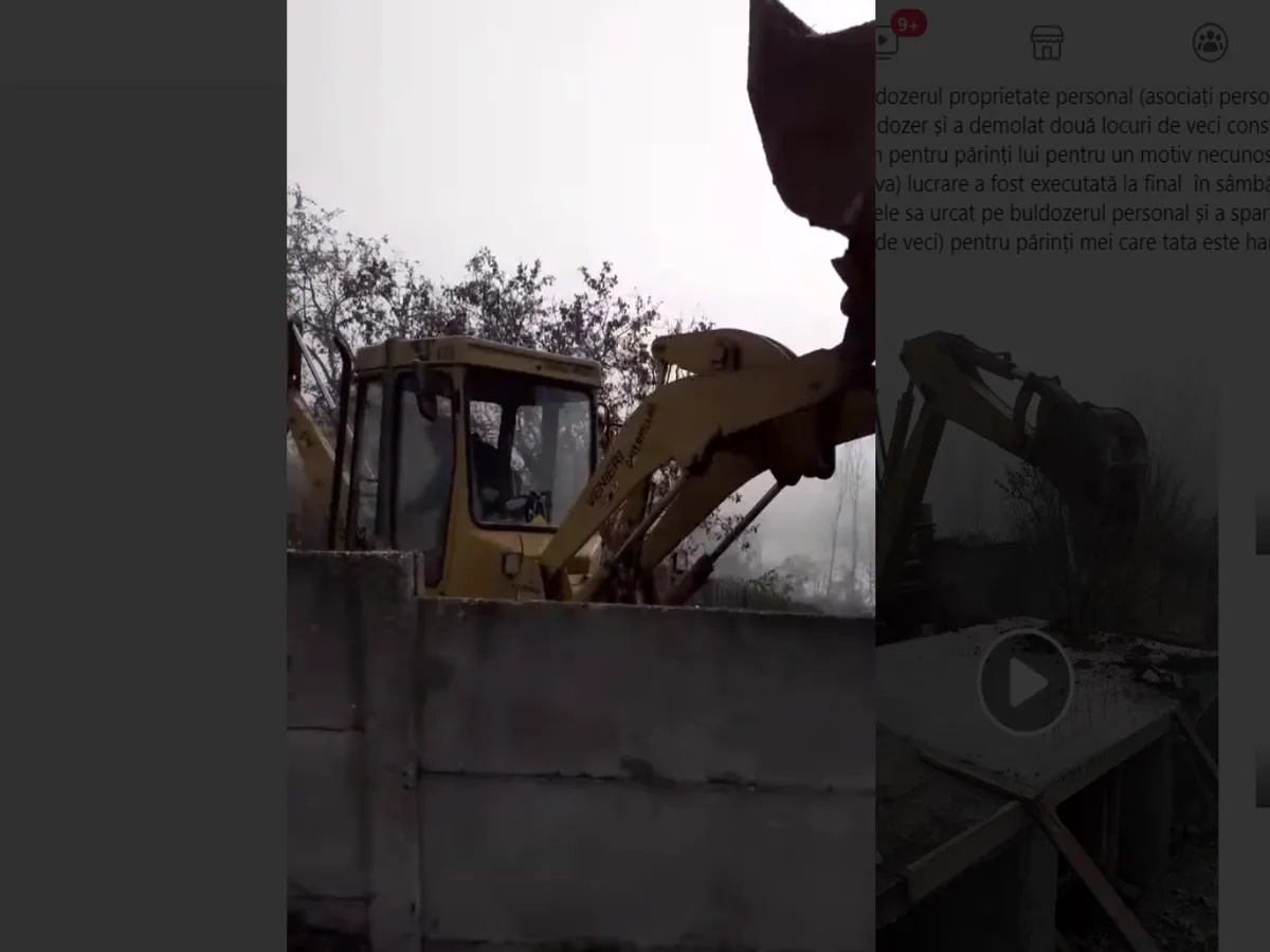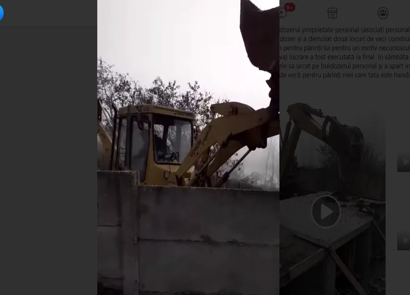 Cei înregistrați video susțin că în buldozer este preotul care dărâmă două cripte. Preotul consideră că sunt construite ilegal.