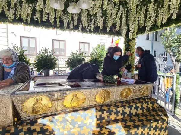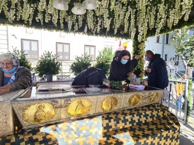 FOTO & VIDEO Sfânta Parascheva în raclă și pelerinii cu masca-n barbă