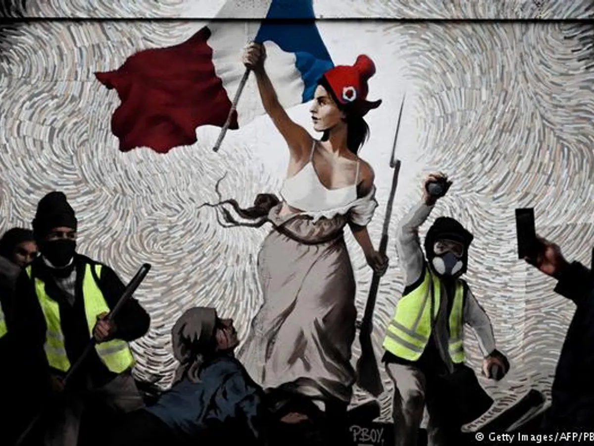 Analogie amuzantă și statement politic: graffiti-ul artistului stradal PBOY de la Paris compară ”vestele galbene” cu luptătorii pe baricade ai revoluției din iulie 1830. Citează renumita pictură a lui Delacroix - ”Libertatea conducând poporul”. Dar de ce aici, spre deosebire de original, personajul principal nu este topless?