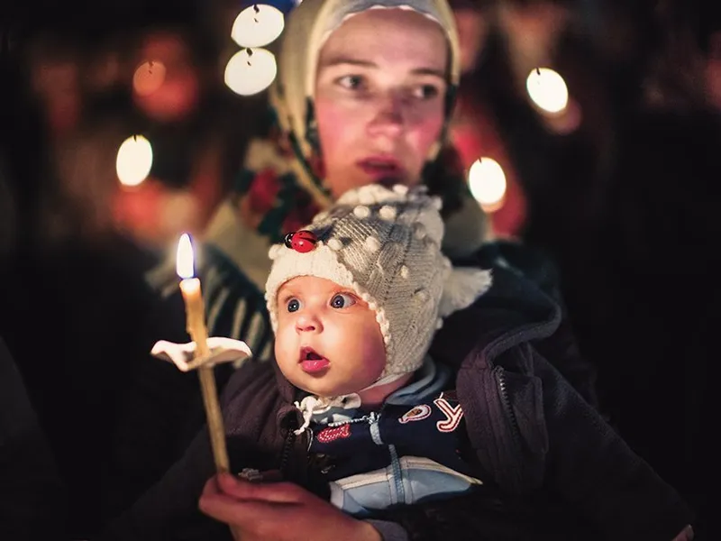 Tânără pregătindu-se să plece la slujba de duminică, în satul Săpânța