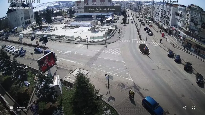 Câteva mașini trec pe strada care mărginește platoul central al orașului. Cel mult 5 oameni s-au putut vedea în timp real în centrul orașului. (Imagini în timp real pot fi vizionate aici)