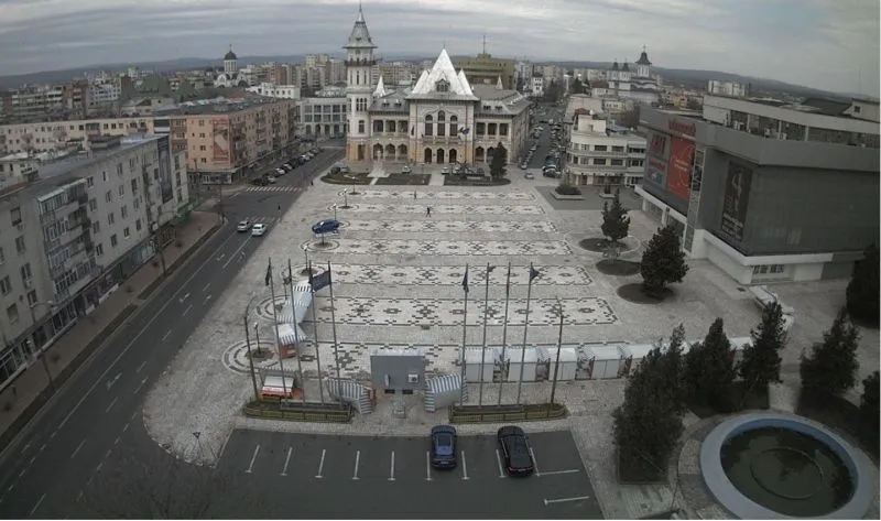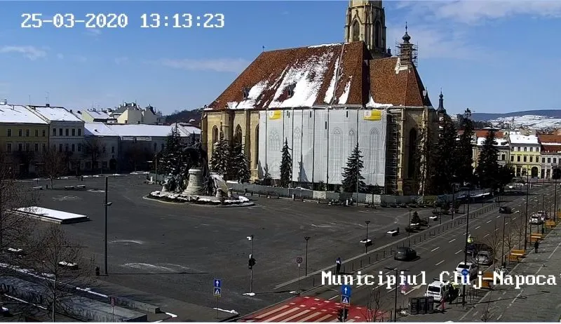 Piața Unii este goală, doar câteva persoane aventurându-se pe bulevardul Eroilor din oraș. De asememea, platoul pe care află statuia lui Matei Corvin este gol. (Imagini live pot fi vizionate aici)