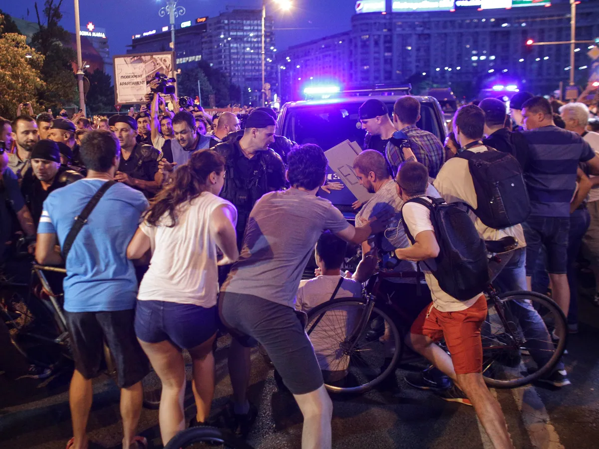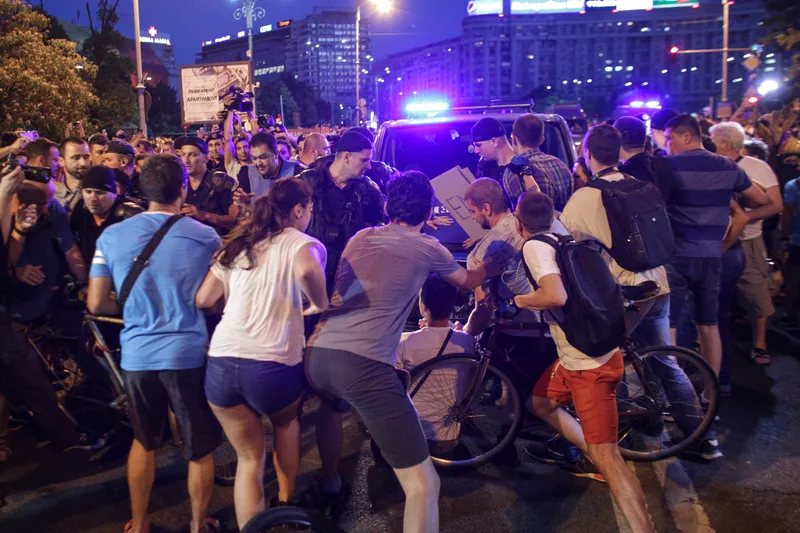 ”Ca urmare a incidentelor înregistrate în cursul serii de miercuri, 20 iunie 2018, în zona Piața Victoriei, precizăm că jandarmii din cadrul DGJMB au condus la secția de poliție 6 persoane, în vederea identificării acestora și luării măsurilor legale. De asemenea, menționăm că au fost aplicate sancțiuni contravenționale în valoare de 7.500 lei”, ne-a precizat Jandarmeria Română.