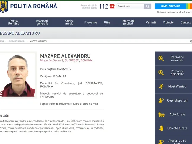 Fratele lui Radu Mazăre, condamnat la 3 ani de închisoare în dosarul locuințelor sociale, a fost dat în urmărire națională, după ce polițiștii nu l-au găsit acasă.