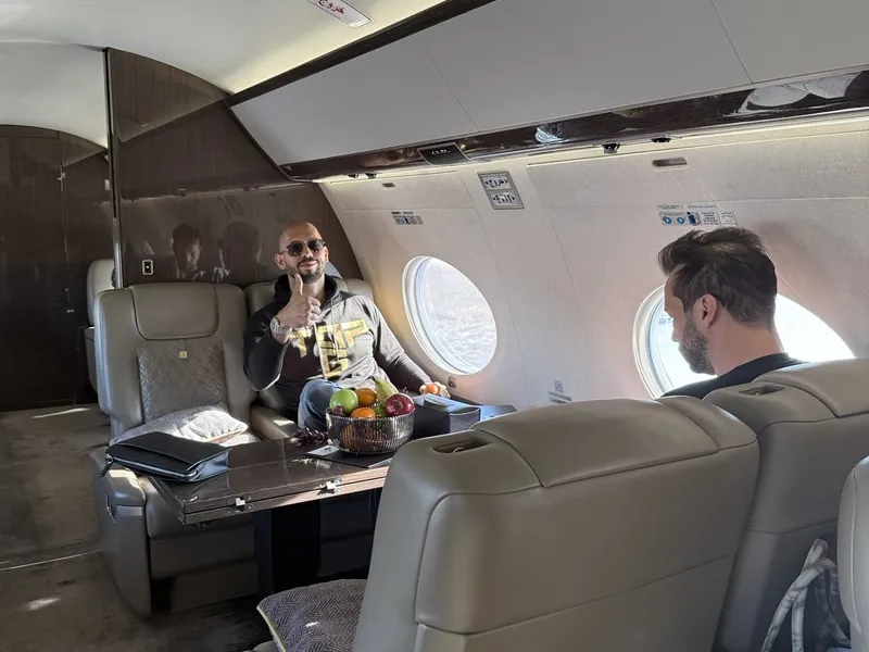 Frații Tate se întorc în România pentru a semna controlul judiciar. Cei doi se află într-un avion privat pe care l-au închiriat pentru suma de 185.000 de dolari.