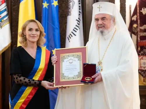 Pe contul de Facebook al Gabrielei Firea au apărut 12 poze de la momentul în care Patriarhul Daniel a devenit cetățean de onoare al Capitalei României.