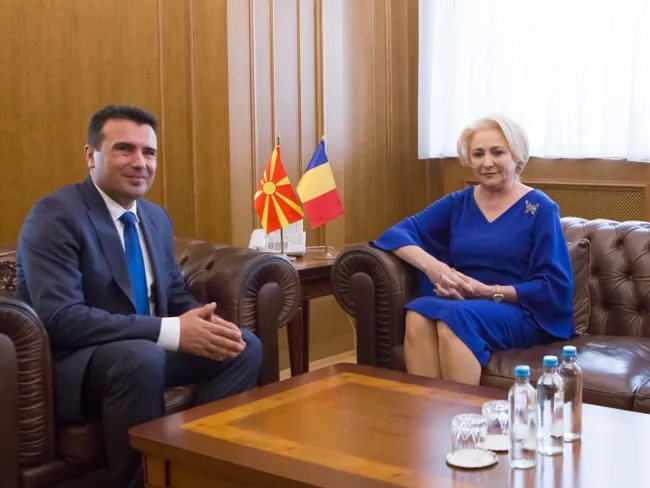 La conferința de presă de după discuțiile cu Zoran Zaev, șeful Guvernului de la Skopje, Viorica Dăncilă a declarat că este primul șef de guvern care a vizitat vreodată statul. „Îmi face o deosebită plăcere să fiu astăzi la Skopje, ca primul prim-ministru care vizitează Republica Macedonia”, a declarat premierul român.