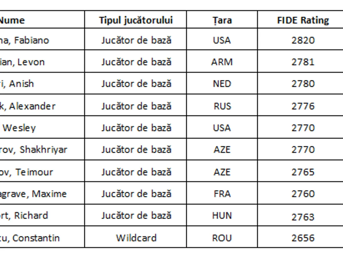 Iată ierarhia jucătorilor înscriși în etapa de la București: