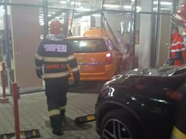 Accidentul a avut loc în zona Egros din municipiul Suceava, unde un autoturism a intrat în vitrina unui magazin.