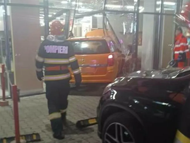 Un bărbat a intrat cu autoturismul, sâmbătă seară, în vitrina unui magazin din municipiul Suceava. El a primit asistenţă medicală la locul accidentului, dar a refuzat să fie transportat la spital.
