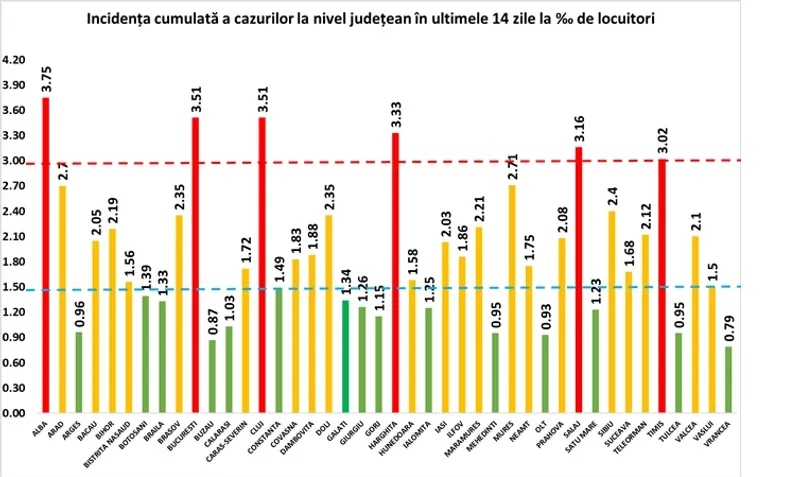 GRAFIC Cinci județe și Capitala au sărit de 3 infectări cu COVID la 1.000 de locuitori