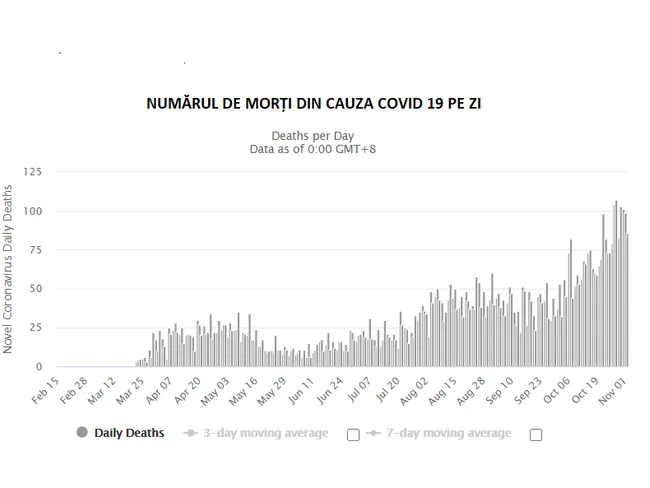 GRAFIC COVID Numărul deceselor are o rată de creștere de trei ori mai mică decât cel al infectărilor