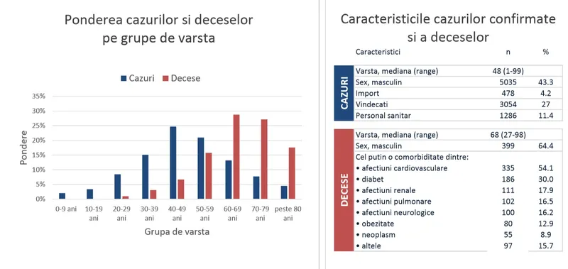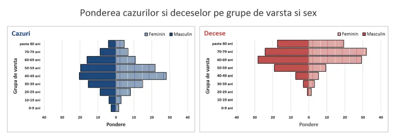 - 73.5% din decese au fost la persoane peste 60 ani si 64.4% din decese au fost la barbati.