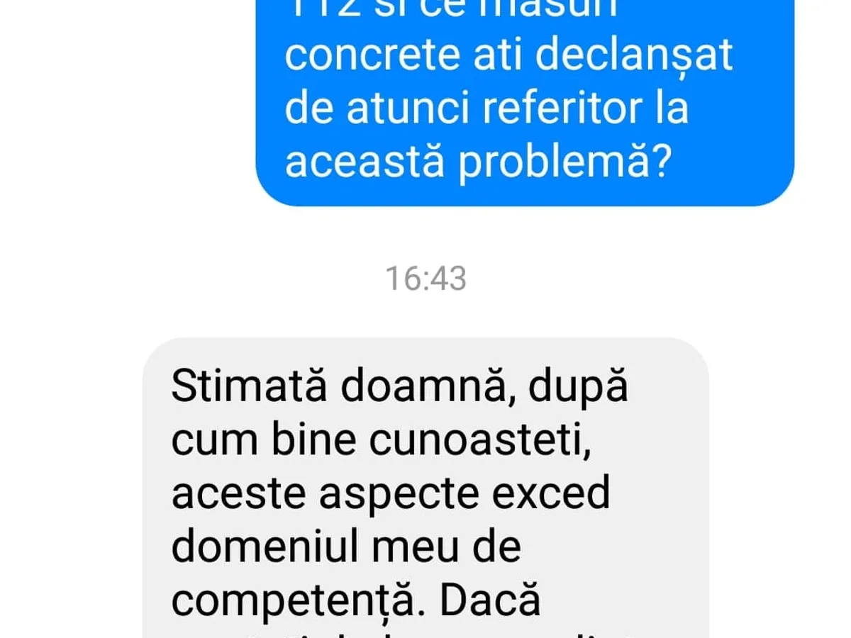 Când Cristina Stark a insistat pentru un răspuns clar pe 112, Grațiela Drăghici s-a apărat sec: „După cum bine cunoașteți aceste aspecte exced domeniul meu de competență. Dacă sunteți de bună-credință, ceea ce nu pun la îndoială, sigur puteți verifica acest lucru.”