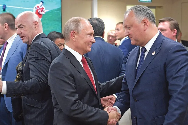 SCHIMBARE ȘI STAGNARE Maia Sandu are susținere externă din partea UE și SUA, dar este strivită acasă de jocurile lui Igor Dodon (sus, cu Putin) și Vlad Plahtoniuc (jos)