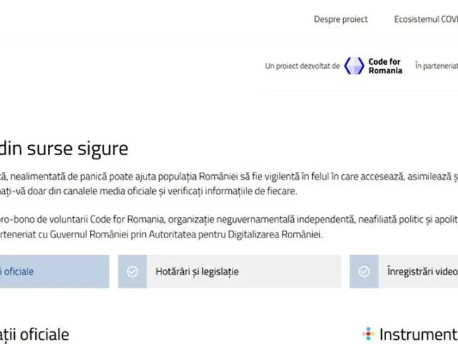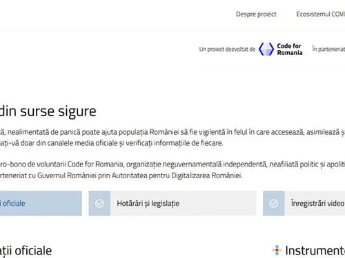 Guvernul României, prin Autoritatea pentru Digitalizarea României, și organizația neguvernamentală Code for Romania au lansat platforma online COVID-19 Știri Oficiale (stirioficiale.ro).