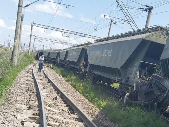 Magistrala București - Constanța este blocată la intrare în stația CF Fetești, pe ambele sensuri de circulație, din cauza deraierii a cinci vagoane din compunerea unui tren de marfă, care aparține operatorului ROFERSPED.