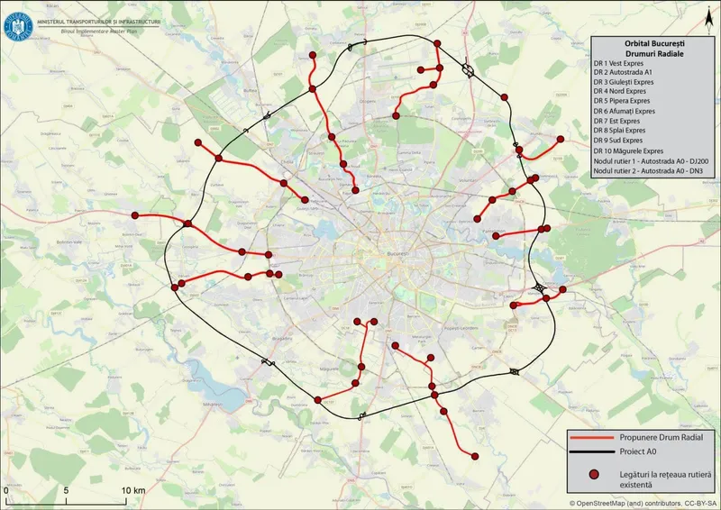 HARTA celor 10 drumuri radiale ce vor lega Capitala de autostrada de centură: Primul studiu, semnat