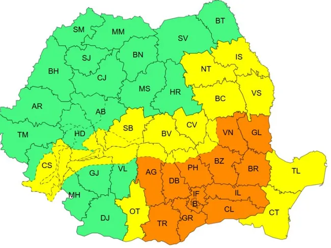 În Dobrogea, jumătatea sudică a Moldovei, estul Munteniei, sud-estul Transilvaniei, precum și în Carpații Meridionali și Carpații de Curbură, va ninge temporar viscolit, se va depune strat de zăpadă cu grosimi medii de 10–15 centimetri, iar vizibilitatea va scădea sub 100 de metri.