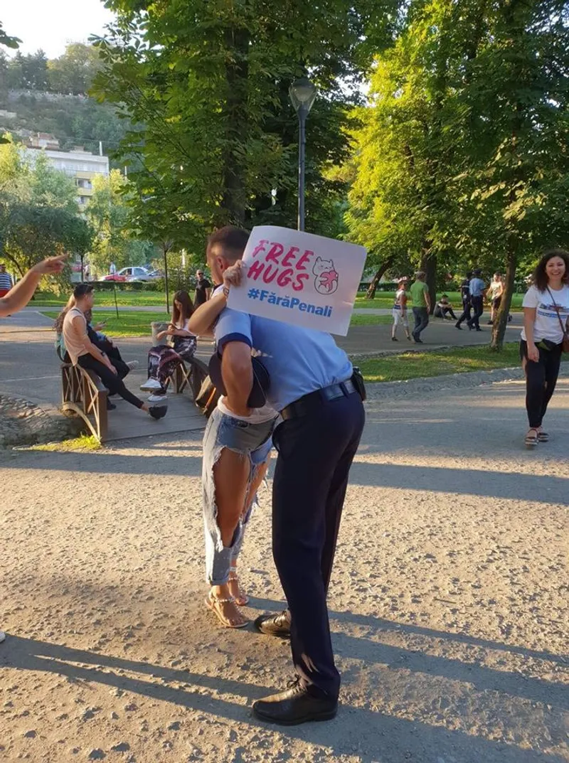 „S-a întâmplat la festivalul Untold din Cluj. Un polițist care susține inițiativa #FaraPenali a primit o îmbrățișare sinceră din partea unei voluntare. Sunt mulți polițiști în sistem mâhniți că lucrurile nu merg bine, că sunt supuși la presiuni politice. De aceea nu trebuie să mai avem penali în funcții în publice! Poliția română trebuie să apere cetățenii și să vegheze la respectarea legii.”